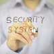 Man, Businessman, entrepreneur, freelancer, software engineer, programmer writes on transparent wall : Security System