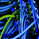 Operational Ethernet server with bunch of UTP cables close up technology clip. RJ 45 used. Fully operational. Close up. Bold colors used.