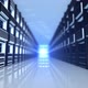 High quality animation of camera moving through the server room.