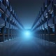High quality animation of camera moving through the server room.