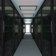 Modern server room interior in datacenter, web network and internet telecommunication technology, big data storage and cloud service concept, 3d rendering