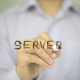 Man, Businessman, entrepreneur, freelancer, software engineer, programmer writes on transparent wall : Server