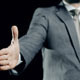 Slow motion of businessman striding towards camera and stretching his arm out waiting for a handshake