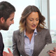 Confident lady entrepreneur sharing business solutions with her partner