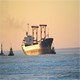 The ship and the frozen sea. A sunset over the sea.
