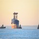 The ship and the frozen sea. A sunset over the sea.