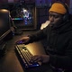 Shot of delighted guy playing video games on computer in led-lit room man won round in game, passed level, joy of victory, smile emotions while talking through headset.