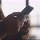 Side view of man hands with watch using mobile phone while working at laptop. Male fingers typing and tapping on smartphone. Texting and scrolling. Slow motion. High quality 4k footage