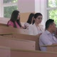 Side view of multiracial group of students sitting on lecture hall in university building preparing for practical tasks and looking through the notes in copybooks. Concept of studying and education