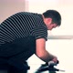 Skilled man taping down flooring underlay with scotch. Static shot. 4K UHD