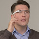 Man using smart glasses against grey background skillfully