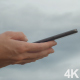 Freelancer woman chatting on smartphone with storm clouds in rain season.