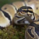 Snake close-up. The boa constrictor raises its head and looks at the camera. FullHD FHD