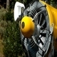 Snow machine filmed in close-up. Propeller rotates slightly in the wind.