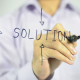 Man writing on transparent screen ( wall ) : solution