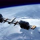 Spacecraft deploying solar panels using modern space technology during the night. Orbiting spaceship in the univers, shuttle into atmosphere. Images from NASA. 3D render animation