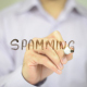 Man, Businessman, entrepreneur, freelancer, software engineer, programmer writes on transparent wall : Spamming