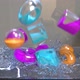 Soft objects that are filled with colorful liquids falling into shallow water.