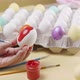 Painting the Easter egg red. Spring holiday Easter. Colorful easter eggs