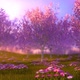 Cherry blooming orchard with dandelions in spring.