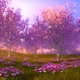 Cherry blooming orchard with dandelions in spring.