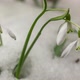Detail of fast snow melts and white snowdrops flower are blooming in early spring season in forest. Time lapse