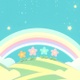 Looped cartoon mountain landscape with beautiful rainbow, colorful flower, white clouds, and glowing star at night animation.