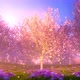 Cherry blossom branch in a tree.A morning sun creates a soft pink hue across the petals.
