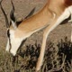 Close-up of a springbok antelope (Antidorcas marsupialis) browsing on a shrub, Kalahari desert, South Africa