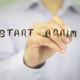 Man, Businessman, entrepreneur, stock trader, analyst or banker writes on transparent wall : Start Again