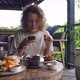 Staying connected virtually. Young Caucasian woman shares her breakfast on a video call and describes all the dishes