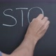 Stop racism. Man writes in chalk on a blackboard stop racism.