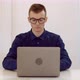 young caucasian man sitting at the desk typing on computer end project guy tired and exhausted