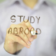 Man, teacher, student, professor writes on transparent wall : Study Abroad