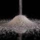 Sugar raining on the mirror table. Close up shot.