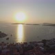 Gün batımı zamanı ve kentsel peyzaj arka planı.