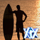 Surfers at the beach. Sunset time clips. Full HD1080p shots.