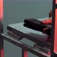 Firearm. Gun safe, gun box. Modern black pistol gun