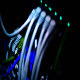 Working Ethernet switch and Ethernet server under this component. Rack focus used, shallow DOF. Technology clip. Details of UTP, RJ45, ports and cables, blinking lights. Long clip of 30 seconds. Various fields of focus used to different components. Can be cut into small parts, smaller clips.
