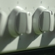 Switching electric stove knobs, hand close-up switching burner.