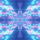 symmetrical 3d object or structure rotates and moves inside glass mirror tunnel with neon light, bright reflections. Fantastic abstract background looped in 4k. Vj loop for show. Night club vj loop.