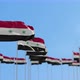 Going Throw Row of waving flags of National flags with sky Background . -3D rendering