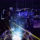 Computer is processing huge amounts of system data in cyberspace. System data creating the projection of the words Digital Twin in cyberspace. Converting digital System data in the virtual cyberspace.