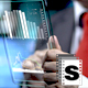 Businessman looking a futuristic tablet with business data. 1 shot full hd