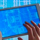 Close up. Tablet with drawing image. Development, development, engineering by means of electronic technologies.