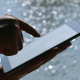 Man using a tablet on the background of water. Full HD 0:10Sec