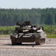 Reinforced self-propelled tracked with powerful weapons. Train filigree driving rebuild tactical attack and defense
