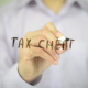 Man, Businessman, entrepreneur, stock trader, analyst or banker writes on transparent wall : Tax Cheat