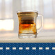 Tea is mixing with hot water in a shiny glass. You can use this item in your food, chemical, tea, coffee, holiday, red, breakfast, morning, waiting, eating themes.