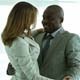 Beautiful business people waltzing in office